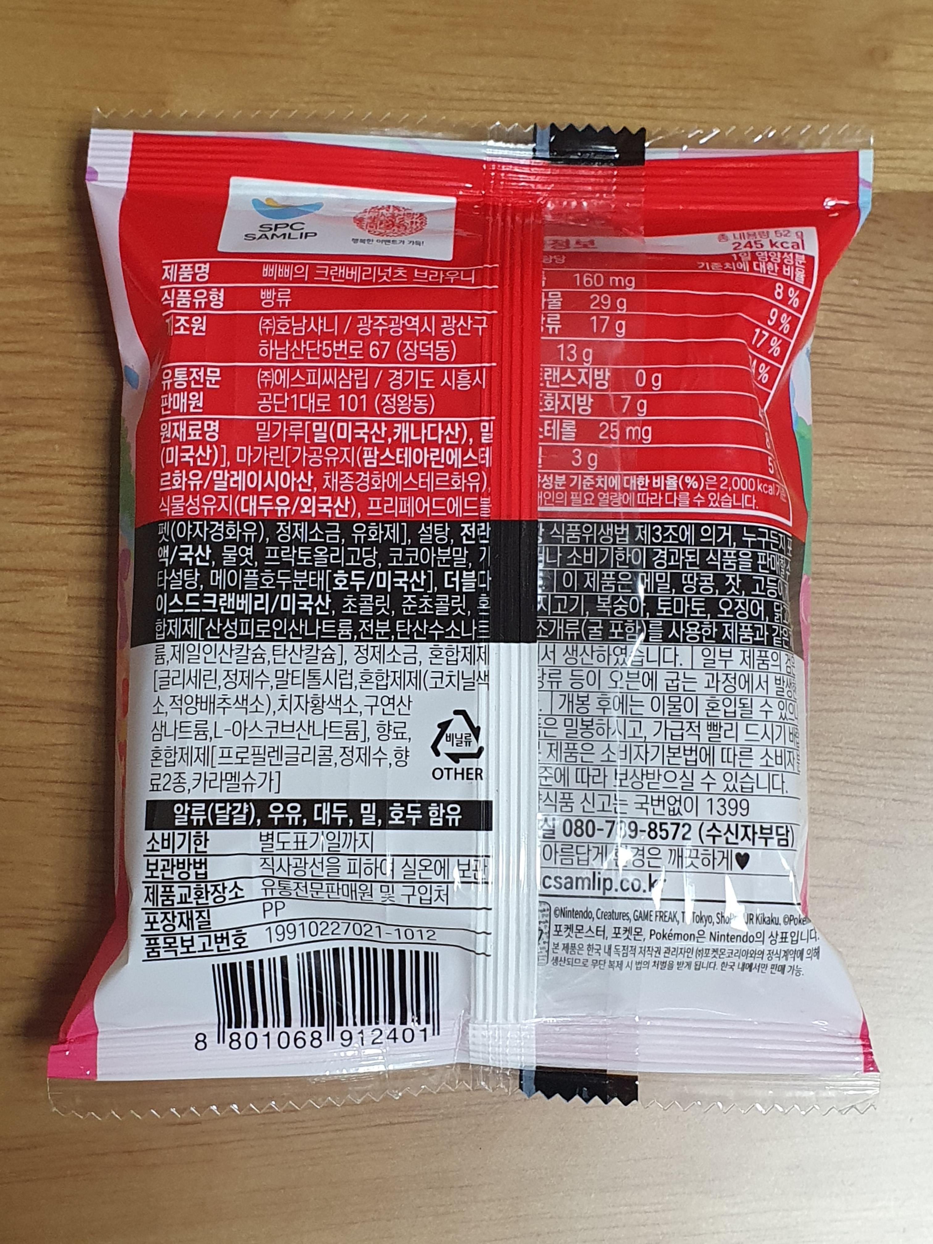 삐삐의 크랜베리넛츠 브라우니 포켓몬빵은 이렇게 생겼습니다.
