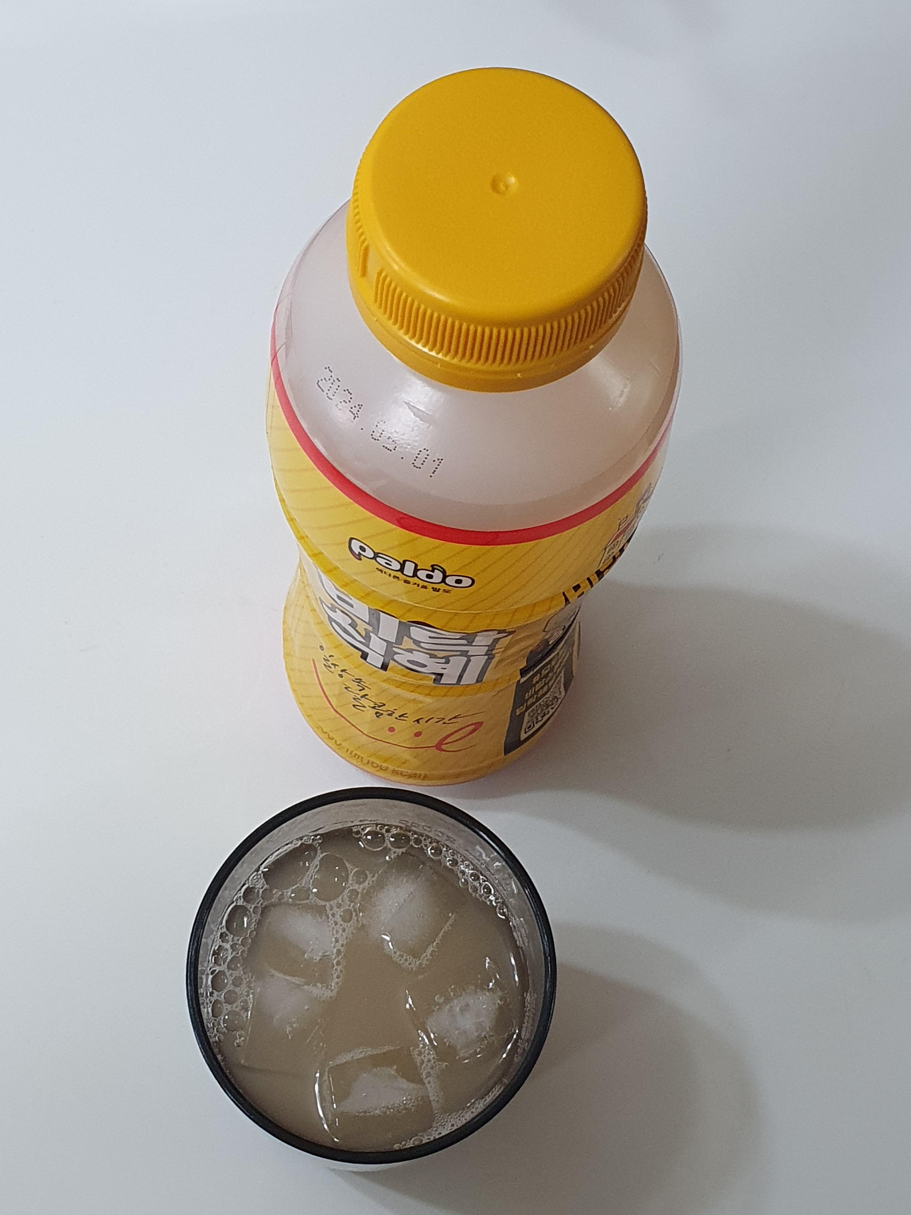 시원한 비락식혜를 먹기 위해서 얼음을 둥둥띄어서 마셨습니다.