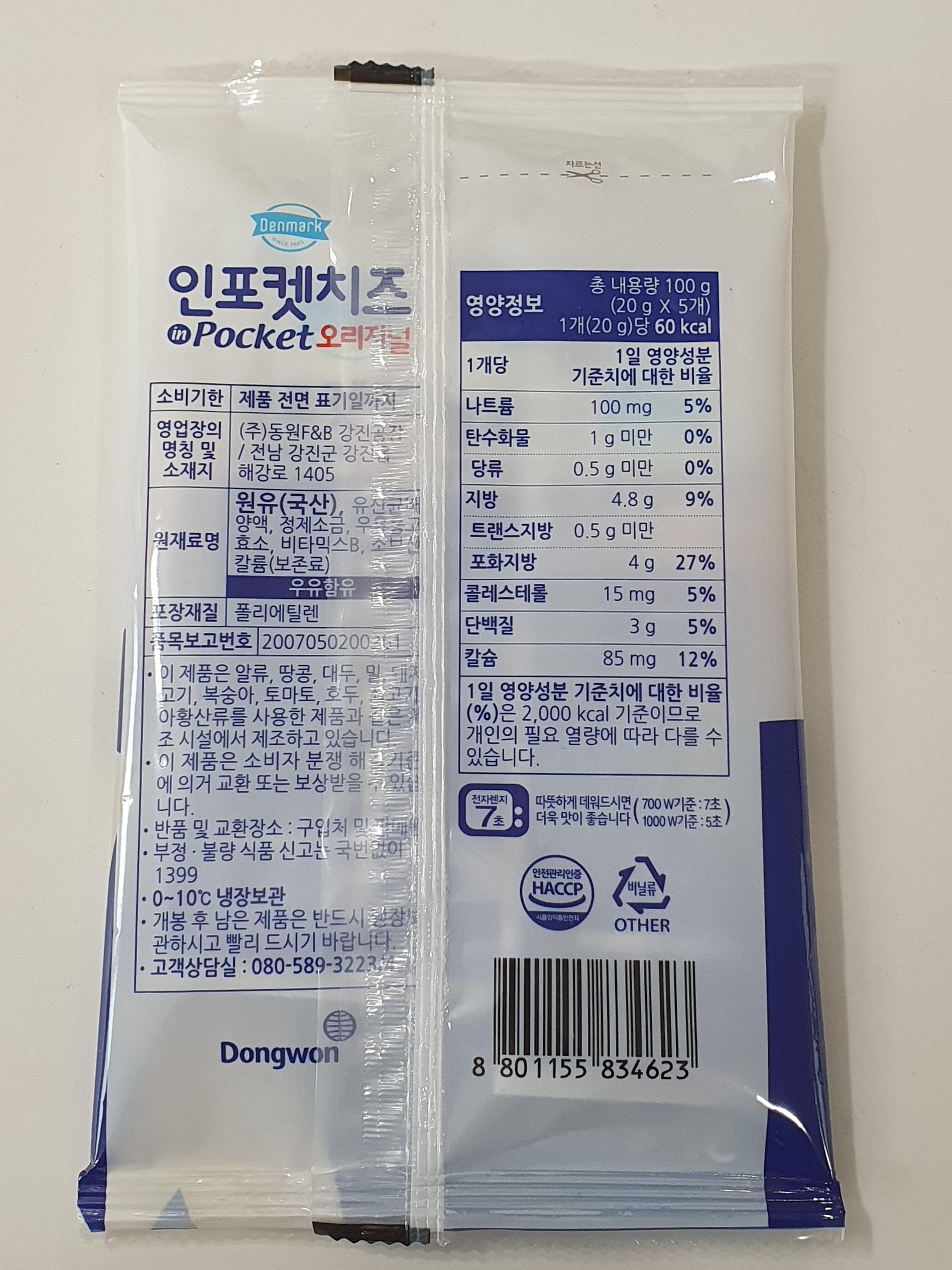 동원F&B에서 만든 덴마크 인포켓치즈 오리지널입니다.