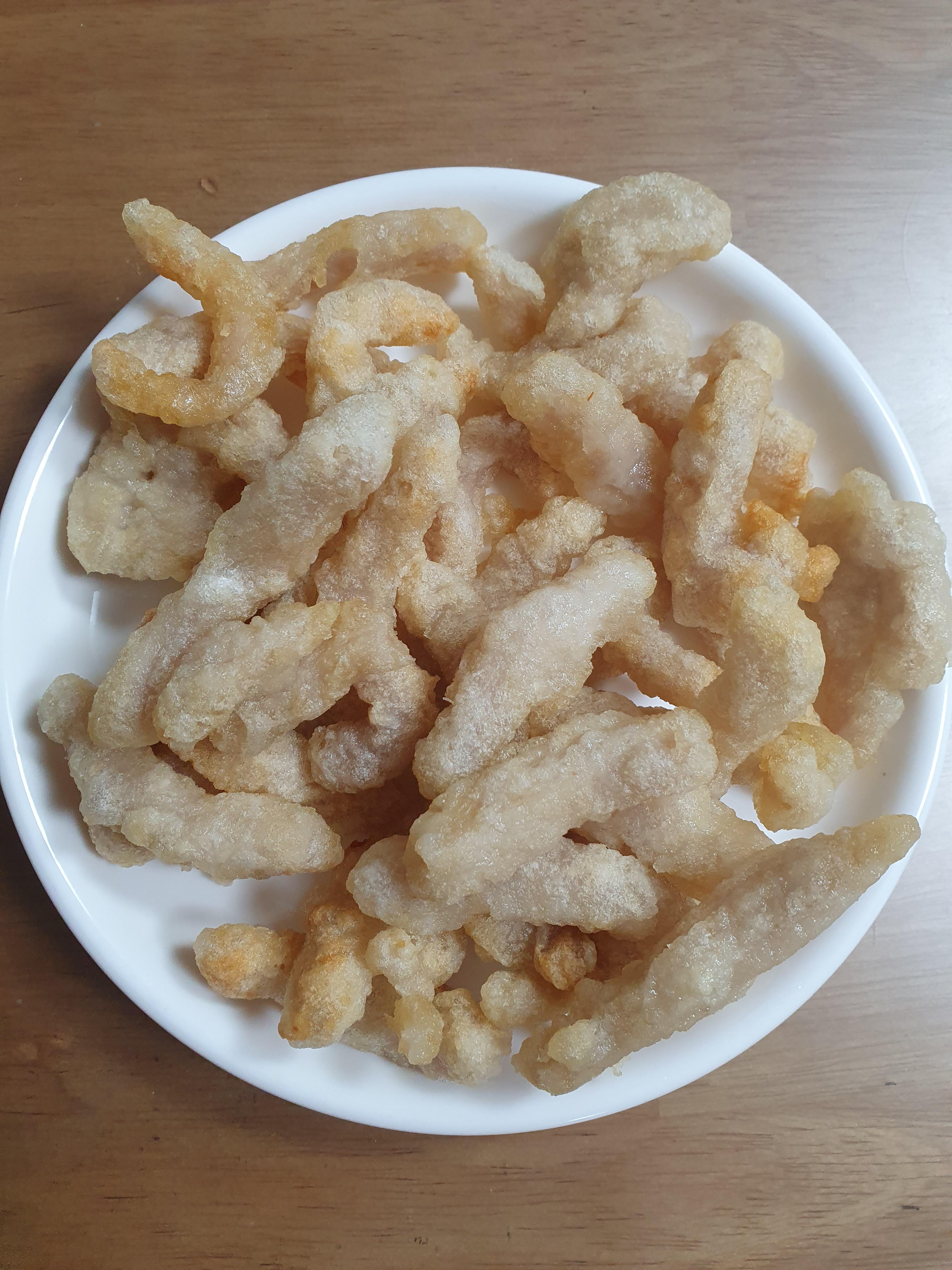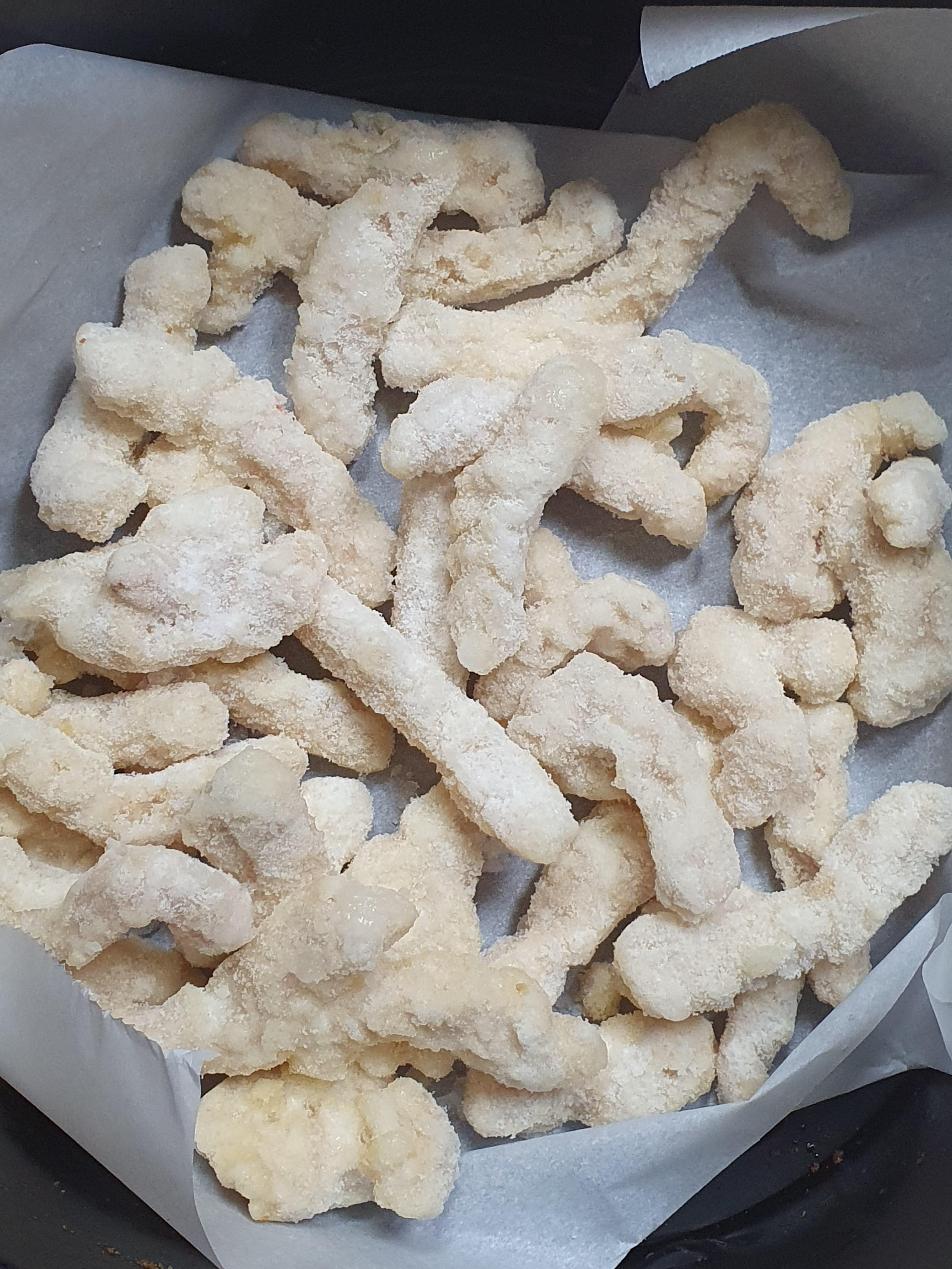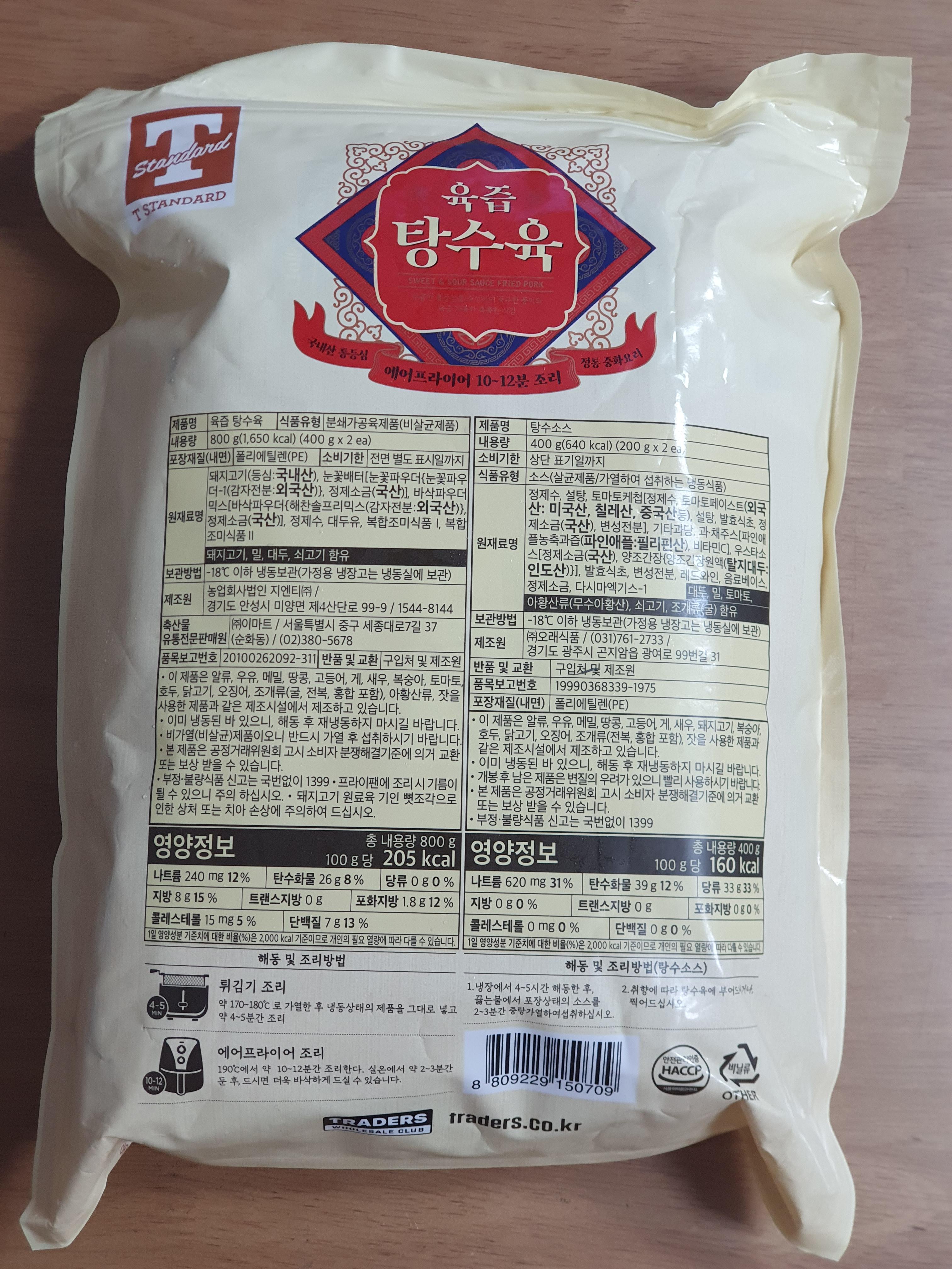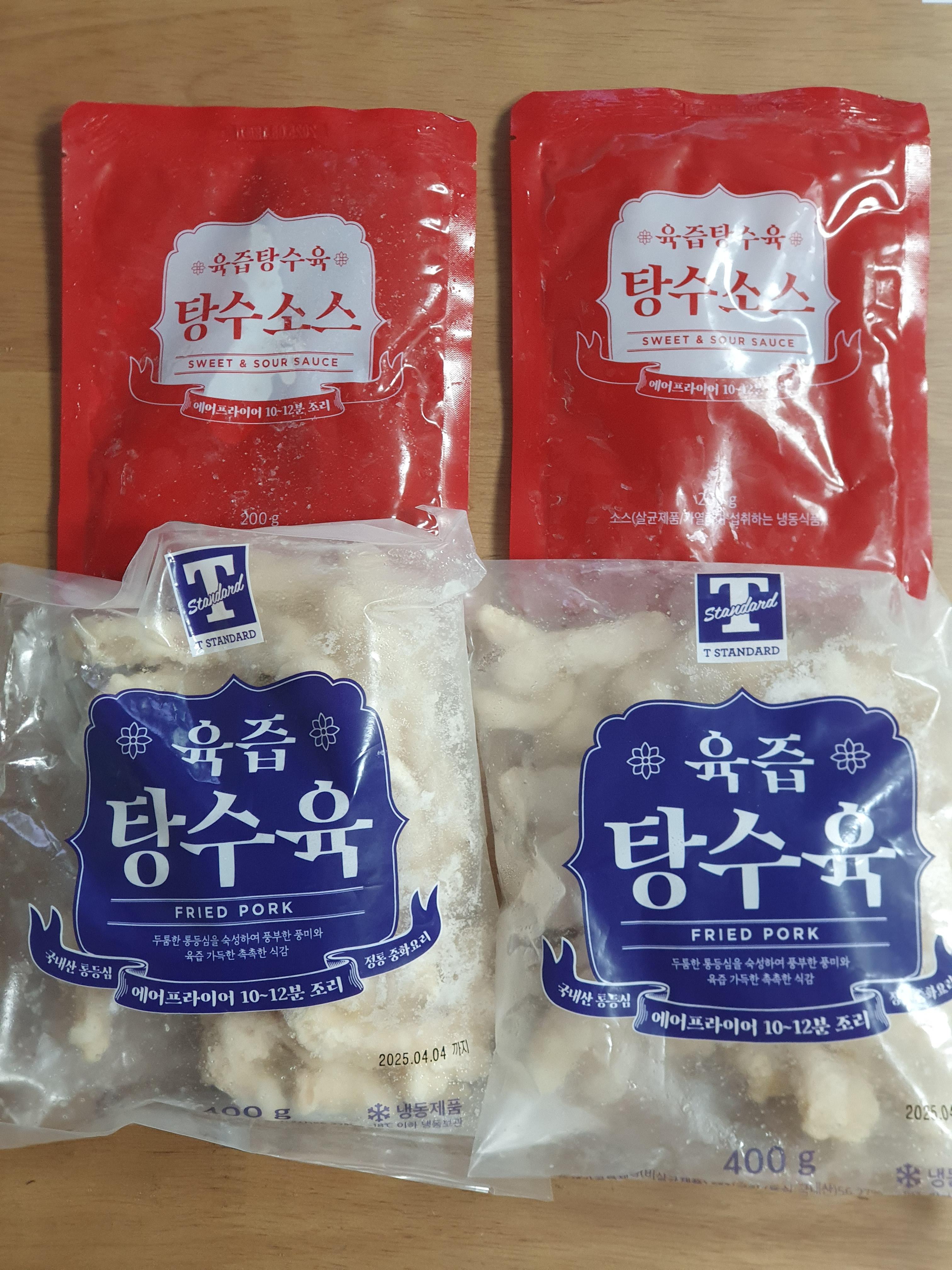 저는 튀김기 조리와 에어프라이어 조리중에 에어프라이어에 탕수육을 돌려서 보았습니다.