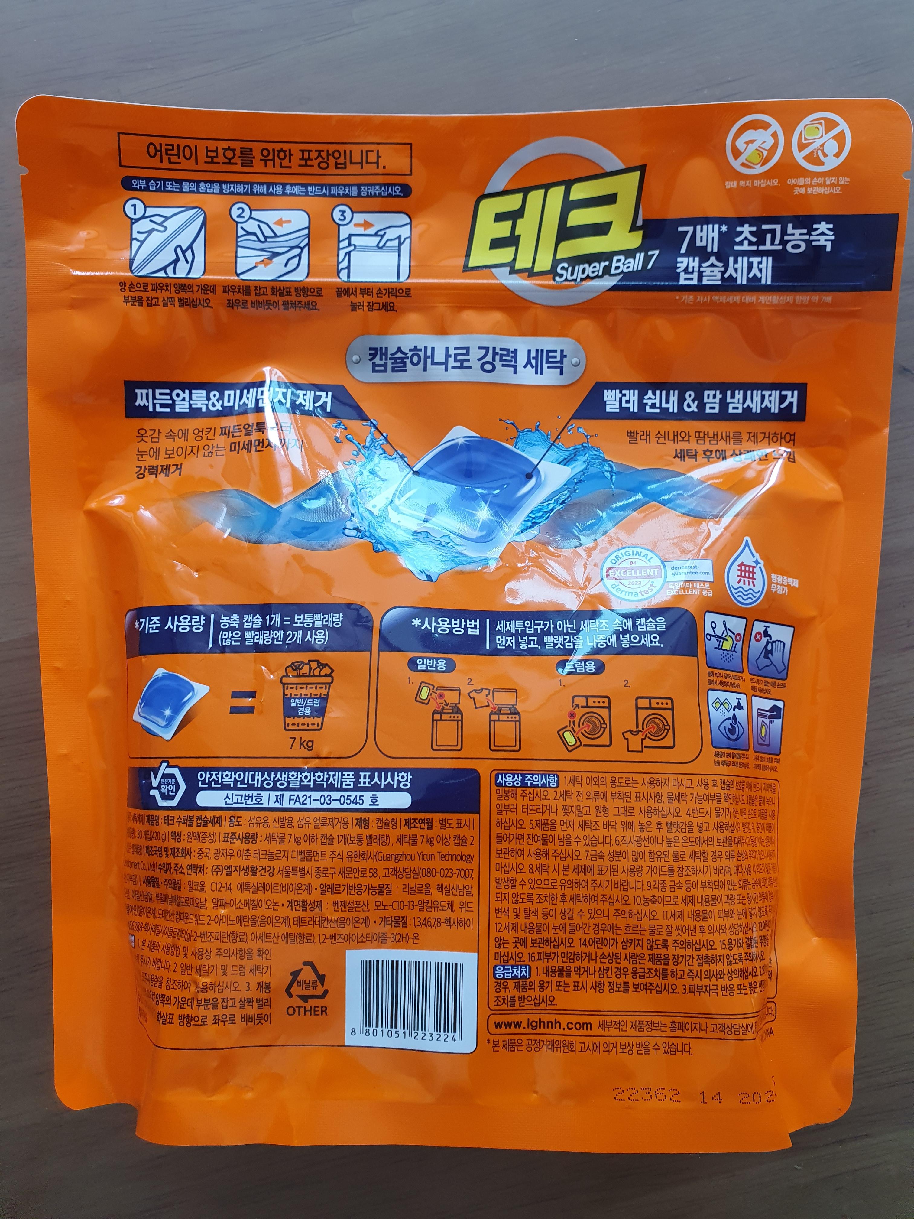 보통 세탁기에 직접 부어서 사용하는 세제를 쓰다가, 캡슐세제라고해서 특이해서 한번 구입해보았습니다.