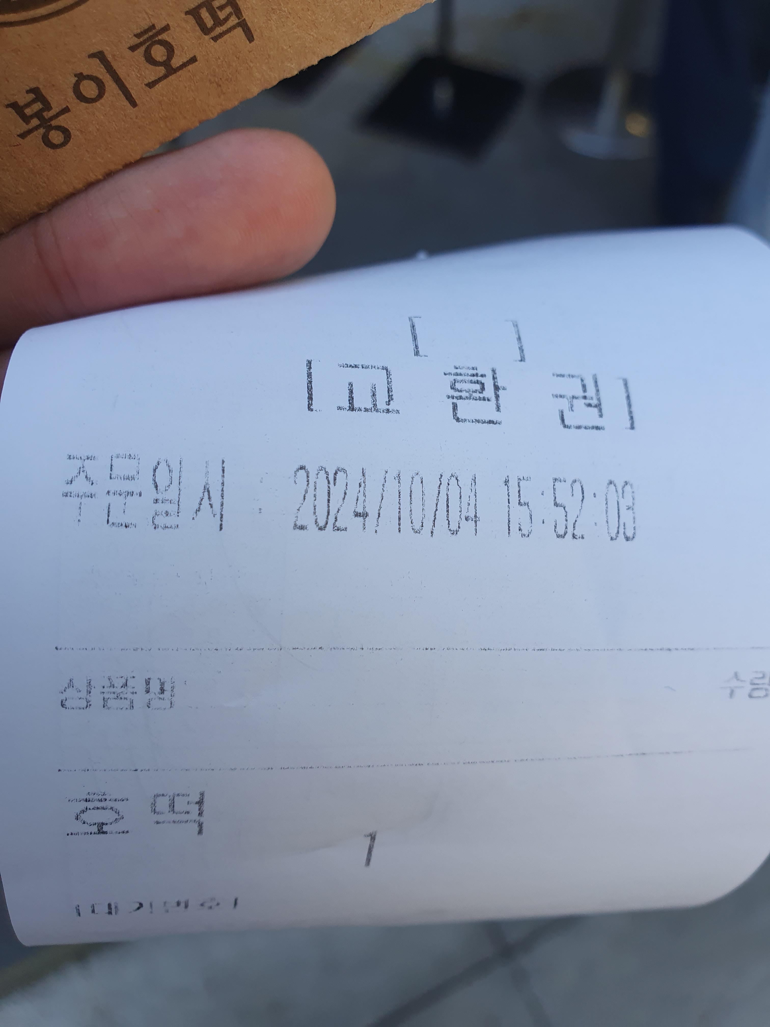 이렇게 교환권을 가지고 가면 봉이호떡을 받을 수 있습니다.