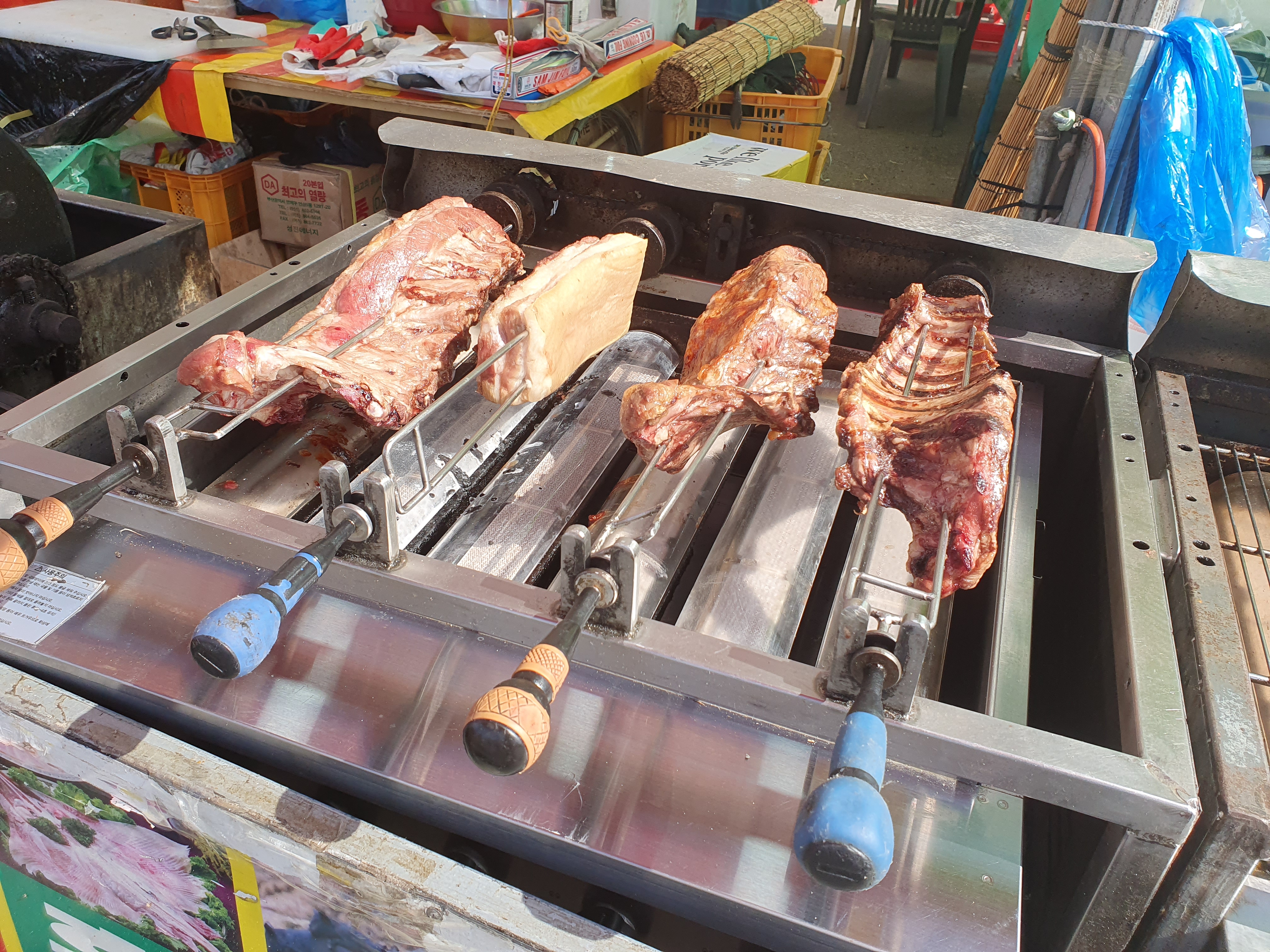 축제에 먹을게 빠질 수 없죠! 고기도 구워지고 있네요~