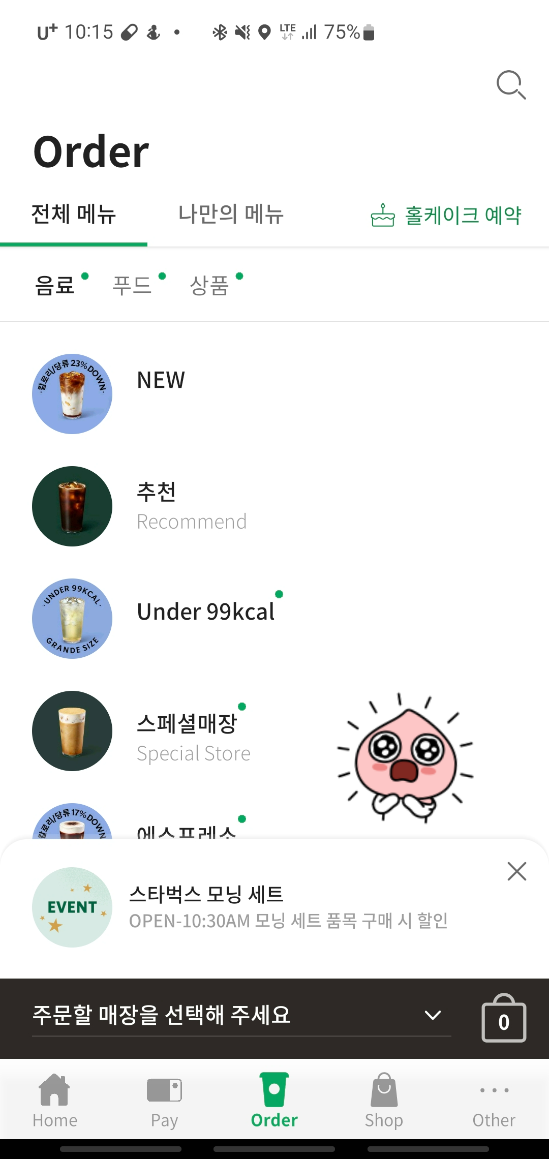역시 Morning Set가 가능한 제품에는 Morning Set이라고 친절하게 표시되어 있습니다.