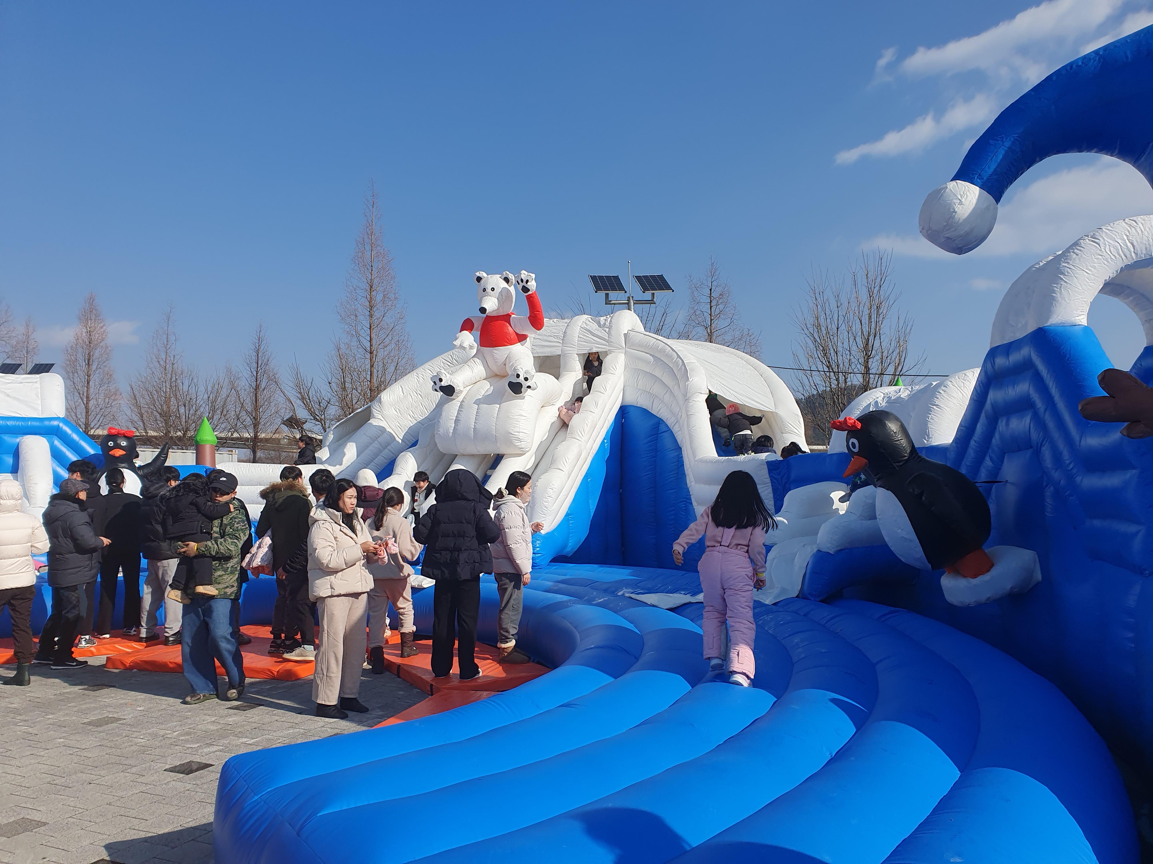 북극곰 슬라이드는 에어바운스로 아이들이 뛰어놀 수 있는 곳입니다.