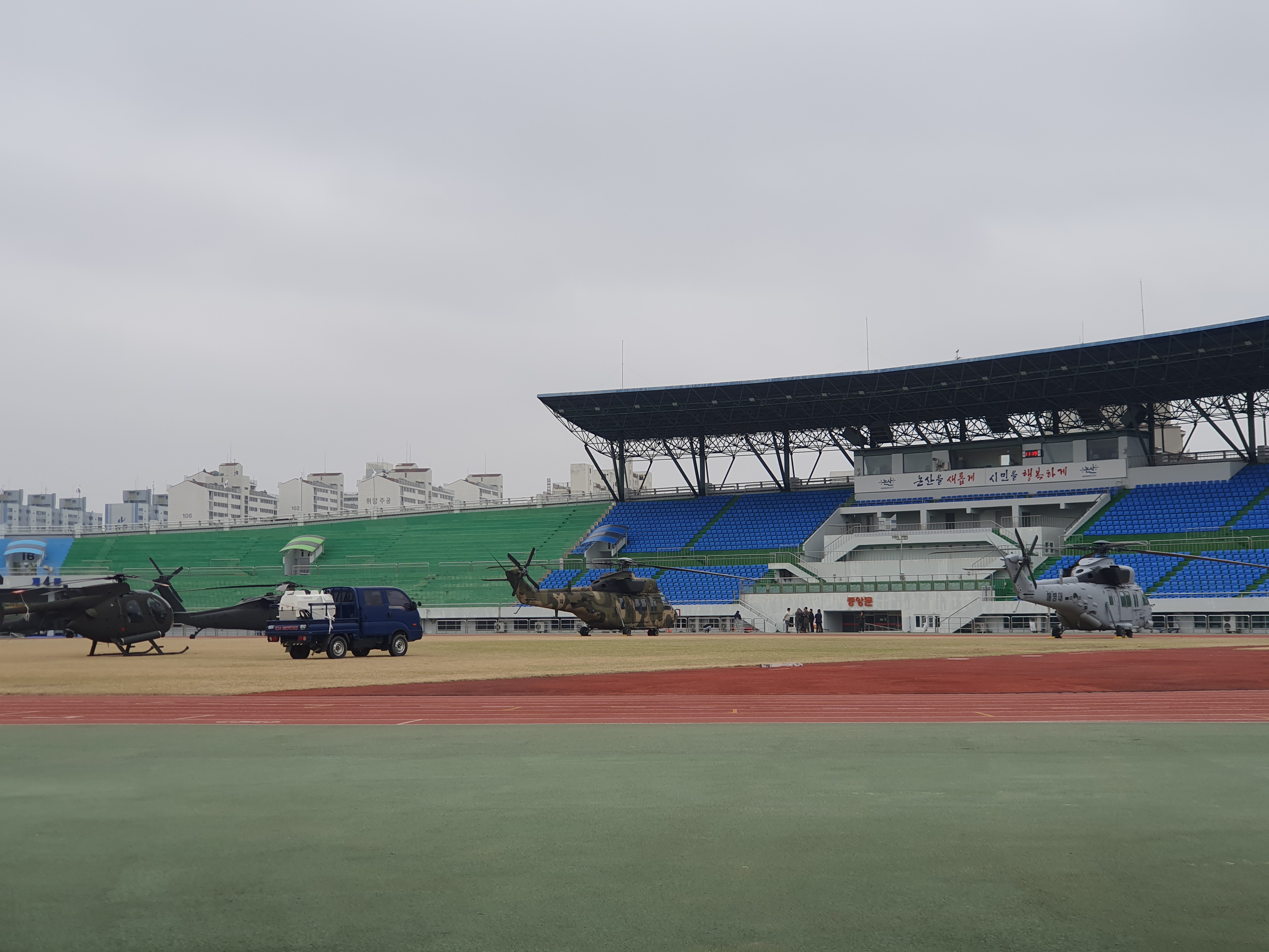 운동장에는 다양한 헬기가 전시가 되어 있는데, 아직 오픈이 안되어서 들어가보지는 못했습니다.