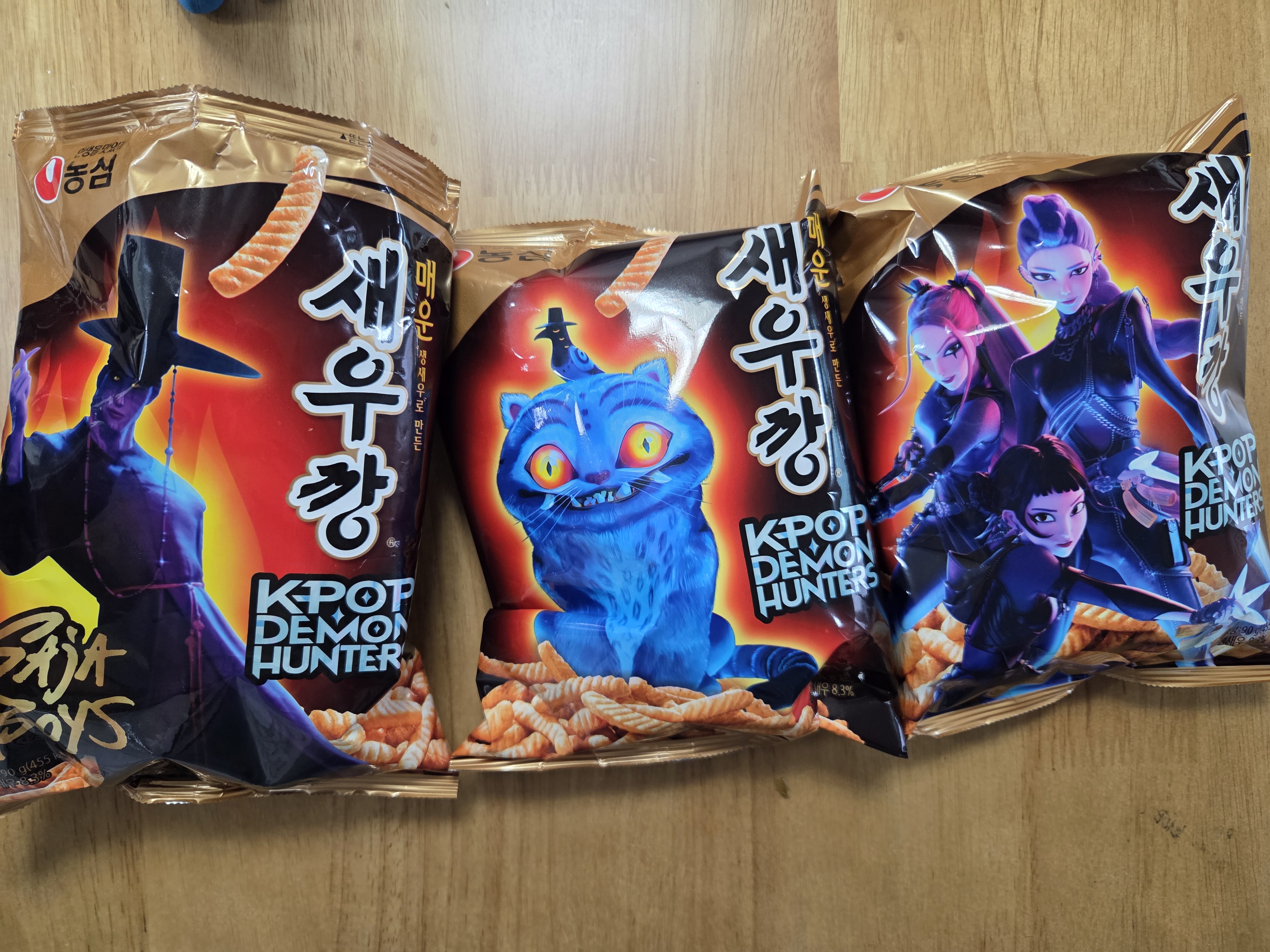 오늘은 마트에 갔다가 농심에서 나온 케이팝 데몬헌터스 새우깡, 매운새우깡, 신라면이 있길래 사왔습니다.