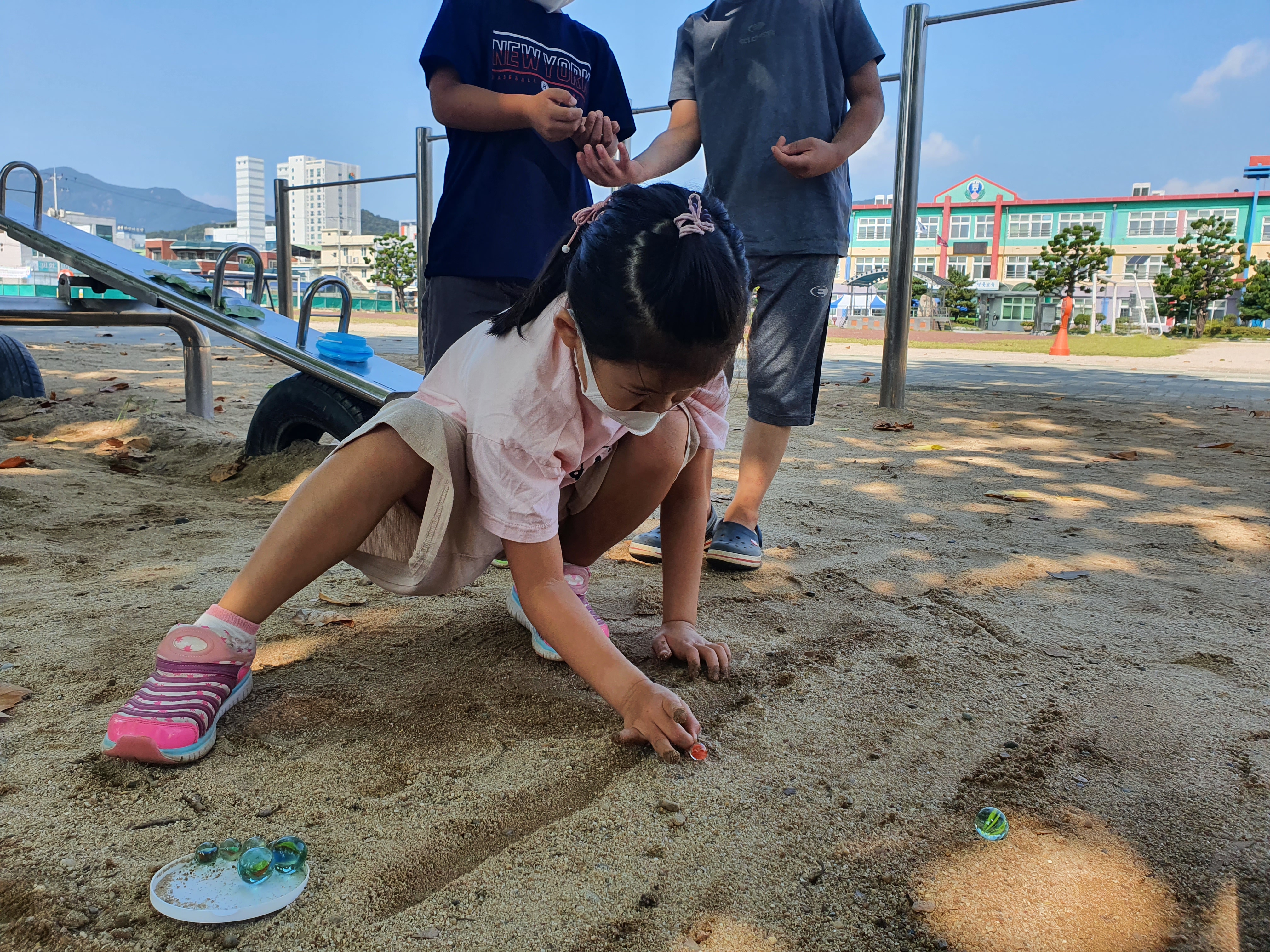 아이들이 좋아했던 딱지치기에 이어서 이번에는 구슬치기를 해보았습니다.