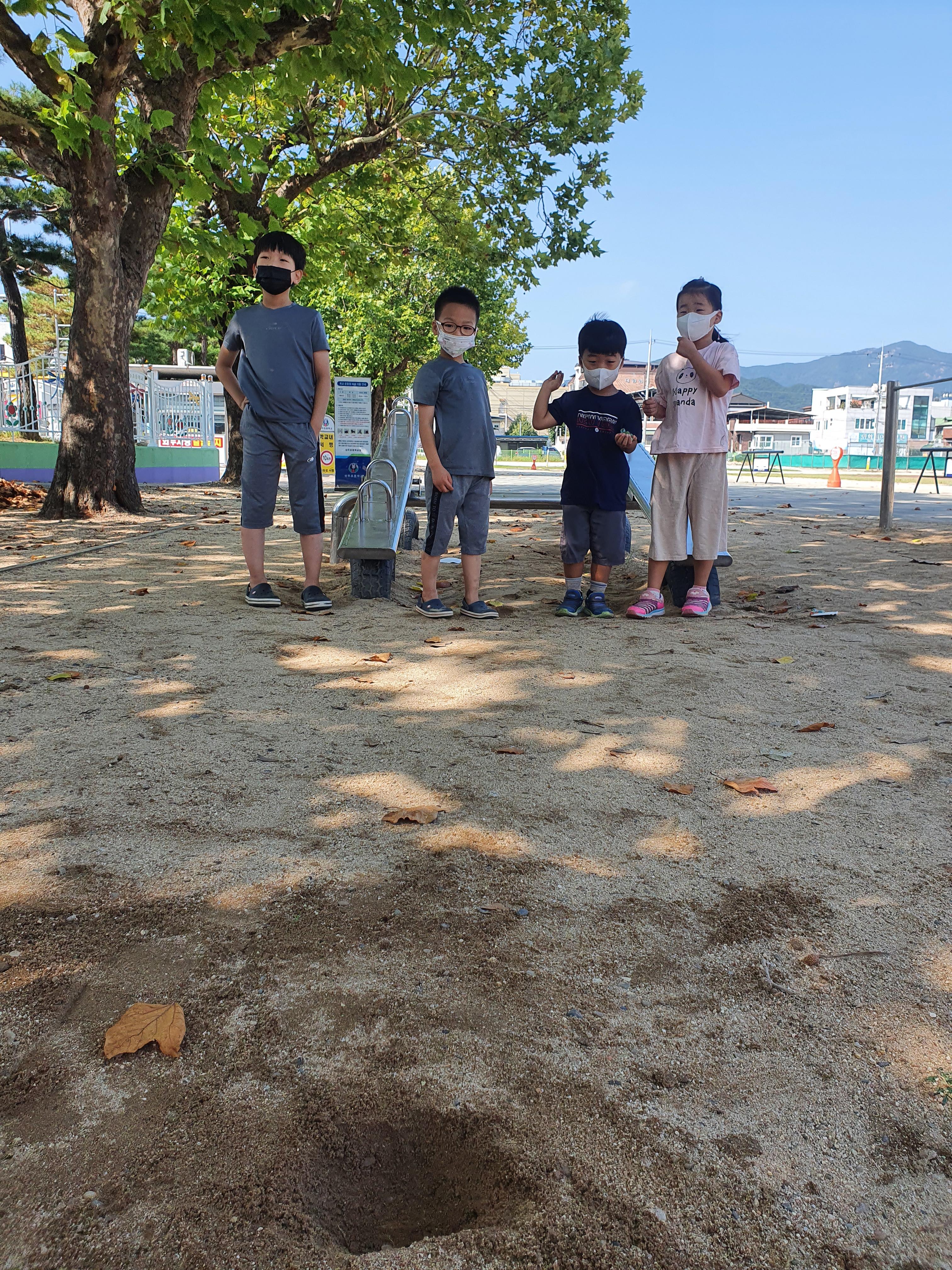 아이들도 재미있어하는데 아이들보다 아빠가 더 신났네요~!! 집에서 한시간동안 구슬치기를 하면서 신나게 았습니다. 주말에는 아버지 생신 때문에 고향에 왔습니다. 사촌들과 함께 밖으로 나가보았습니다. 초등학교 운동장에서 진정한 구슬치기 게임!