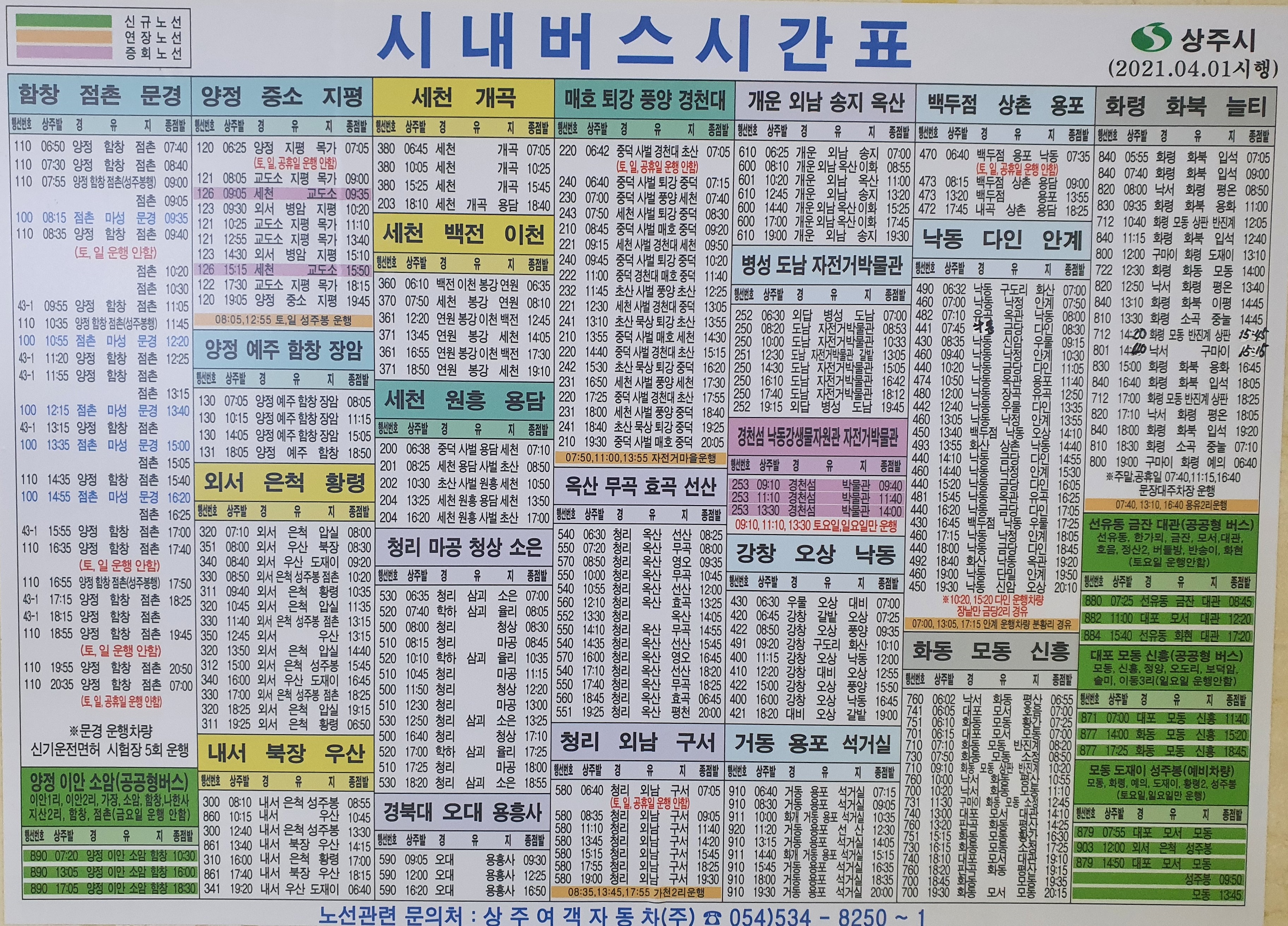 2021년 10월 4일 기준입니다. 상주 출발이며 목적지는 다음과 같습니다.